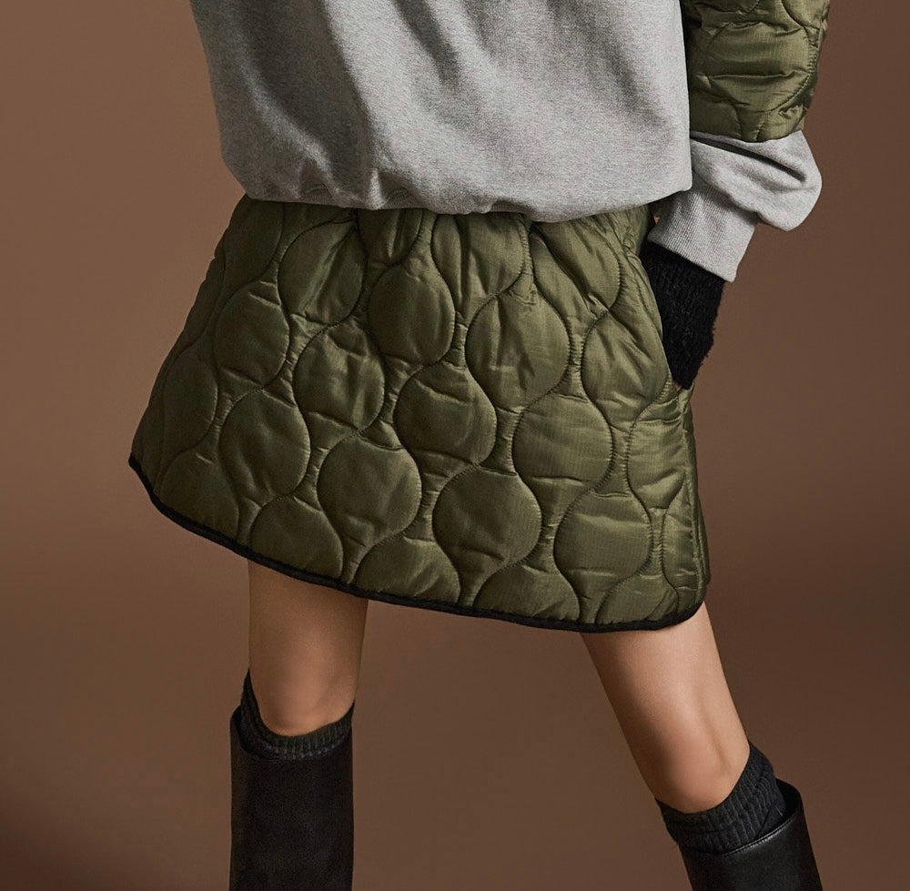 • Mini skirt with unique circular quilted pattern, elasticated waist for a comfortable fit