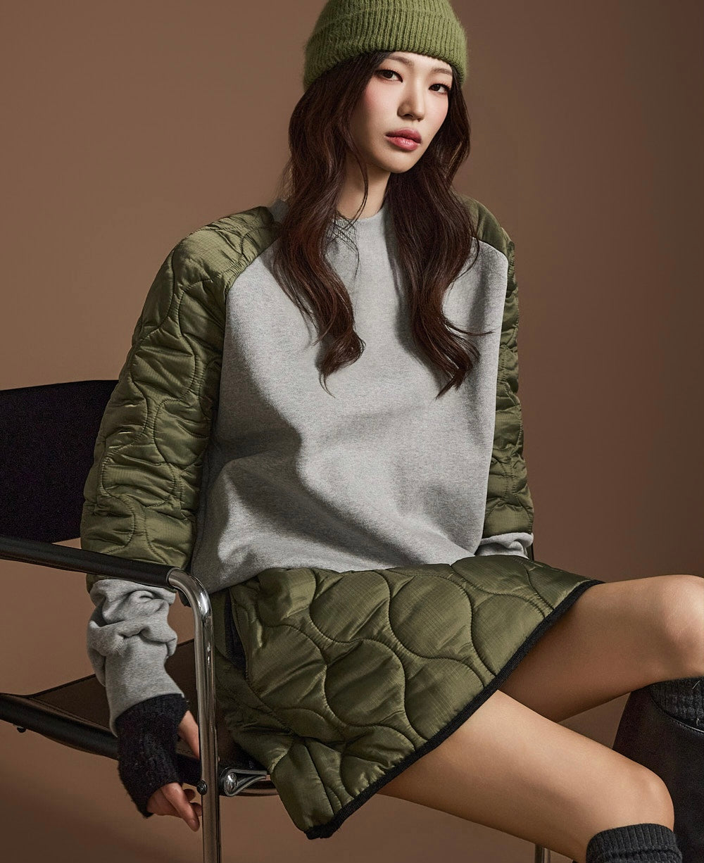 ◦ Gray fleece + olive green quilted panels: Fresh and versatile, adding a gentle vibe
