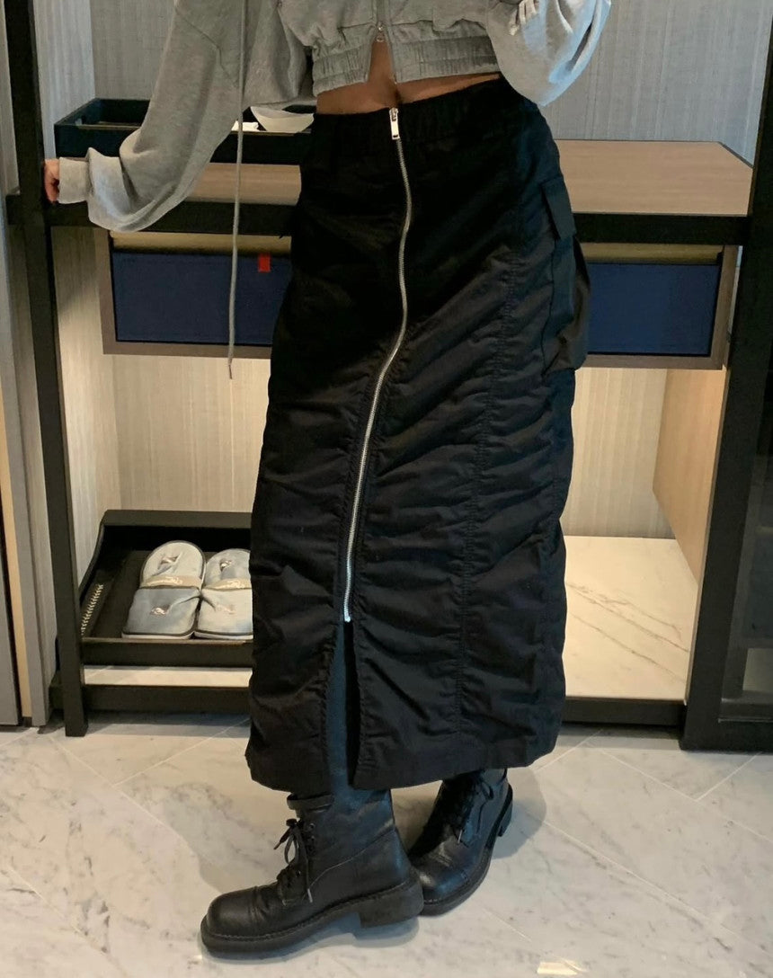 • Women's long cargo-style midi skirt, available in 2 colors: black & olive green