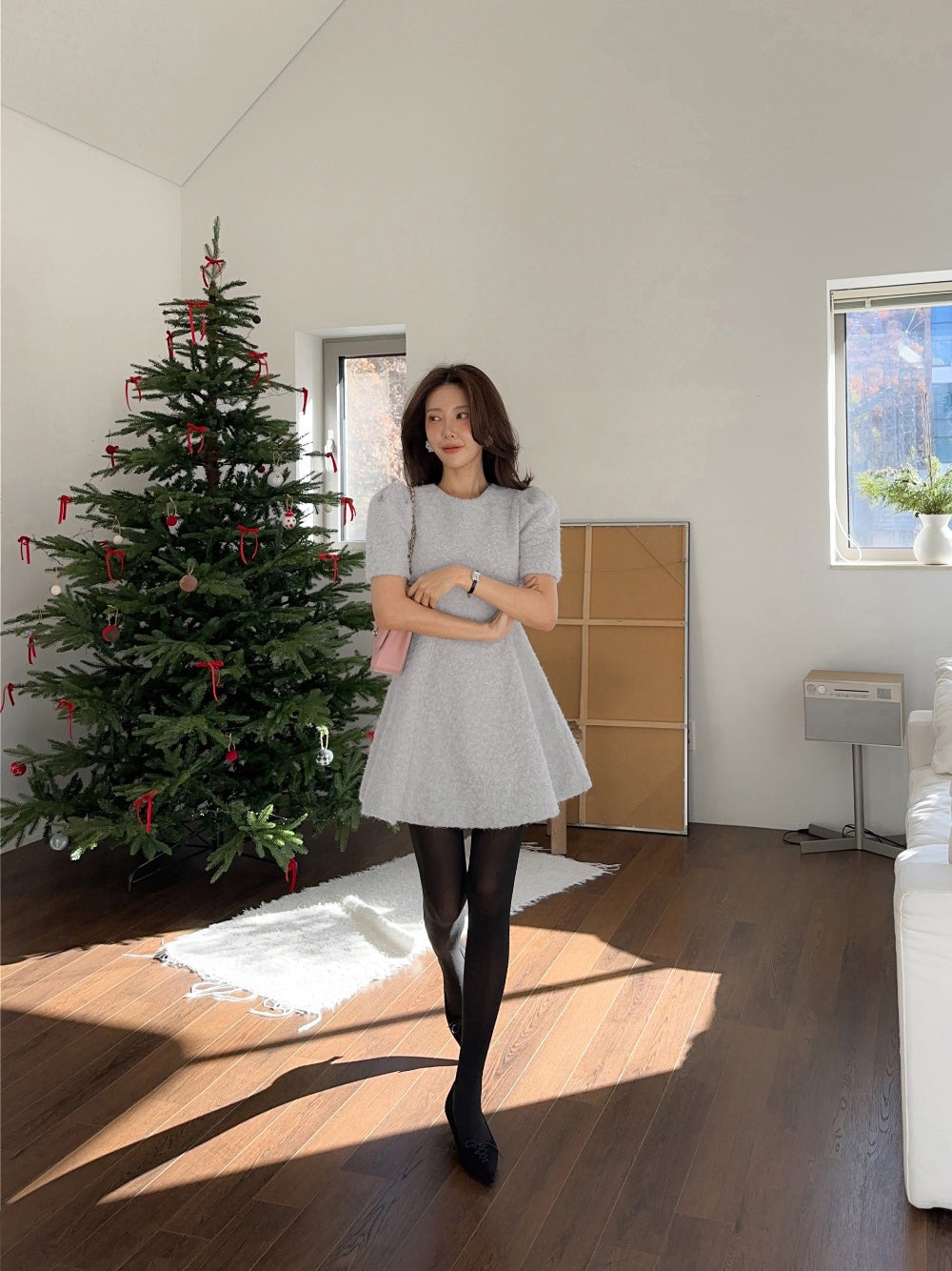 • Fitted waist + flared A-line skirt (slimming and elegant)